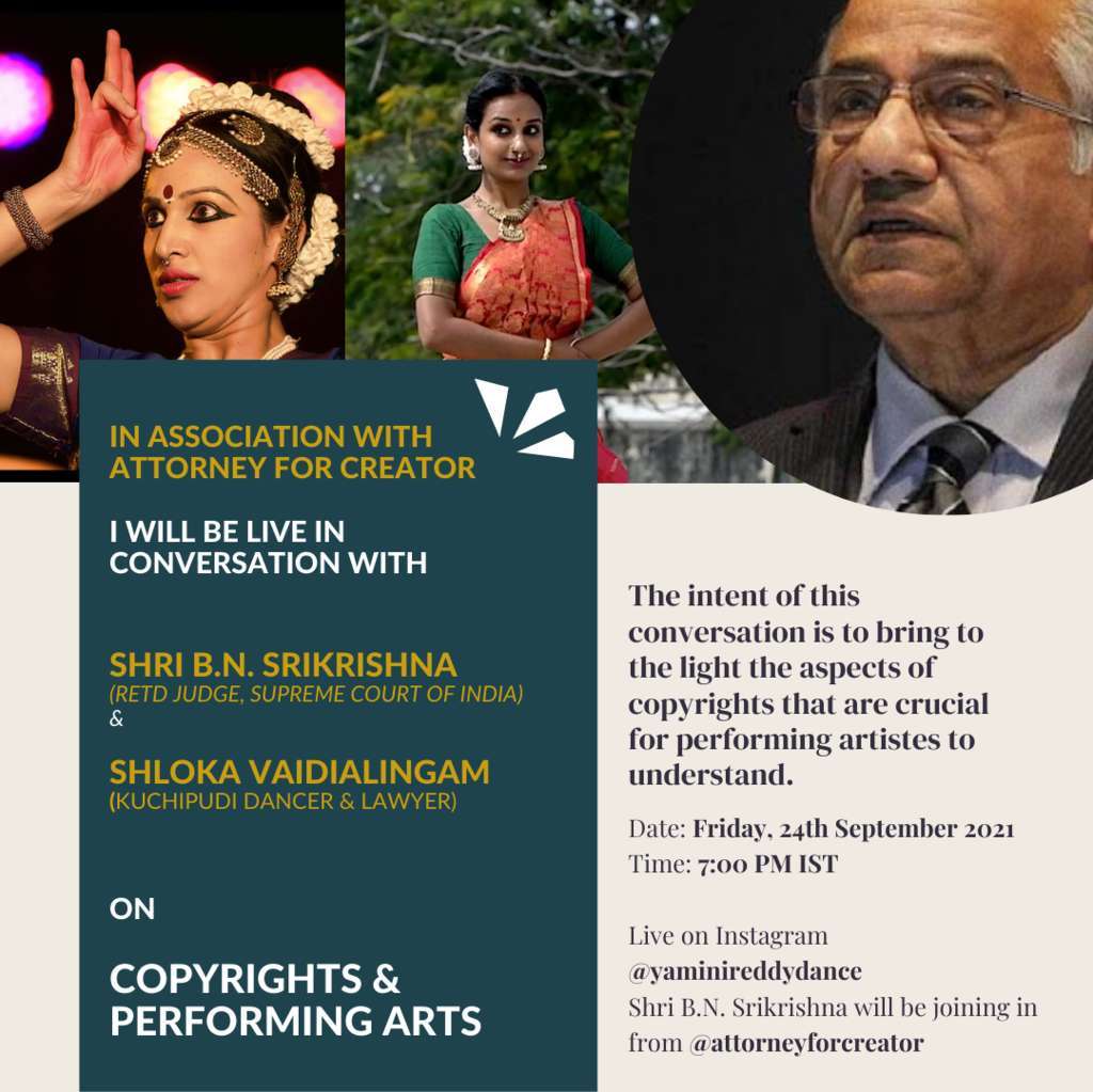 In association with Attorney for Creator, this was a live conversation with Shri B.N. Srikrishna (retired judge of the Supreme Court of India) and Shloka Vaidialingam (Lawyer & Kuchipudi Dancer)