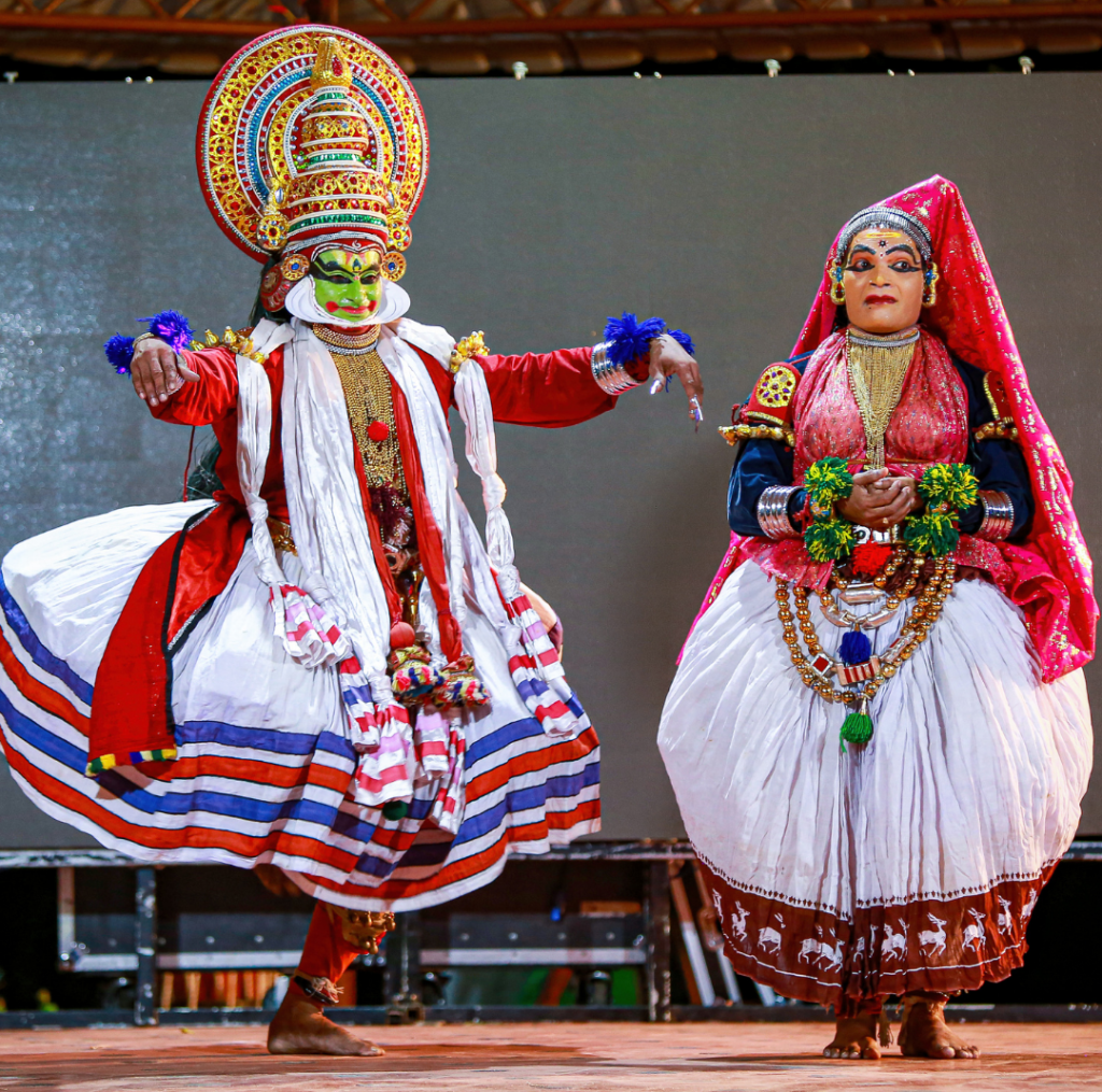 When there is a Saguna representation of the God through the iconographies of the Puranic deities, since they are personified, the narration of their ‘life-stories’ become the performative mode of communication. Here, the dancer takes the roop or embodies the character of the God. The Kathakali (Katha means story, kali means performance) form of classical dance and Kathak (done by kathakaars or storytellers) are some examples where such characterisation is done by the performer. Here, characterisation makes the religious deities become the subject of performance.